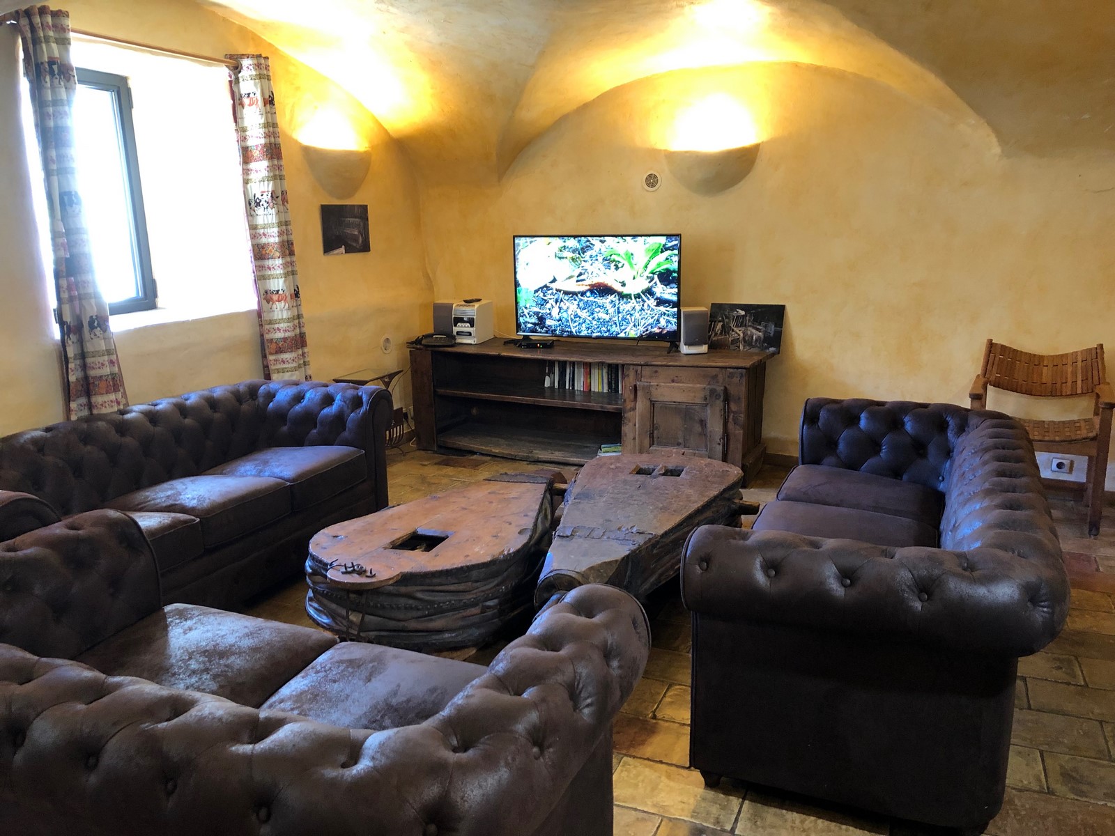 - Grand salon avec coin lecture et cheminée, zone wifi, Billard, Ping-pong, Baby-foot avec salle de jeux pour enfants et vidéos, espace détente (avec participation). En été, grand jardin avec aire de jeux, trampoline, tables de pique-nique et tennis.