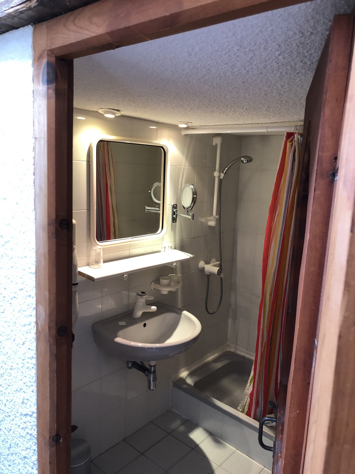 Salle de bain avec douche, sèche cheveux et radiateur sèche serviettes. Télévision et lecteur de DVD. Radiateur dans chaque pièce réglable séparément.
